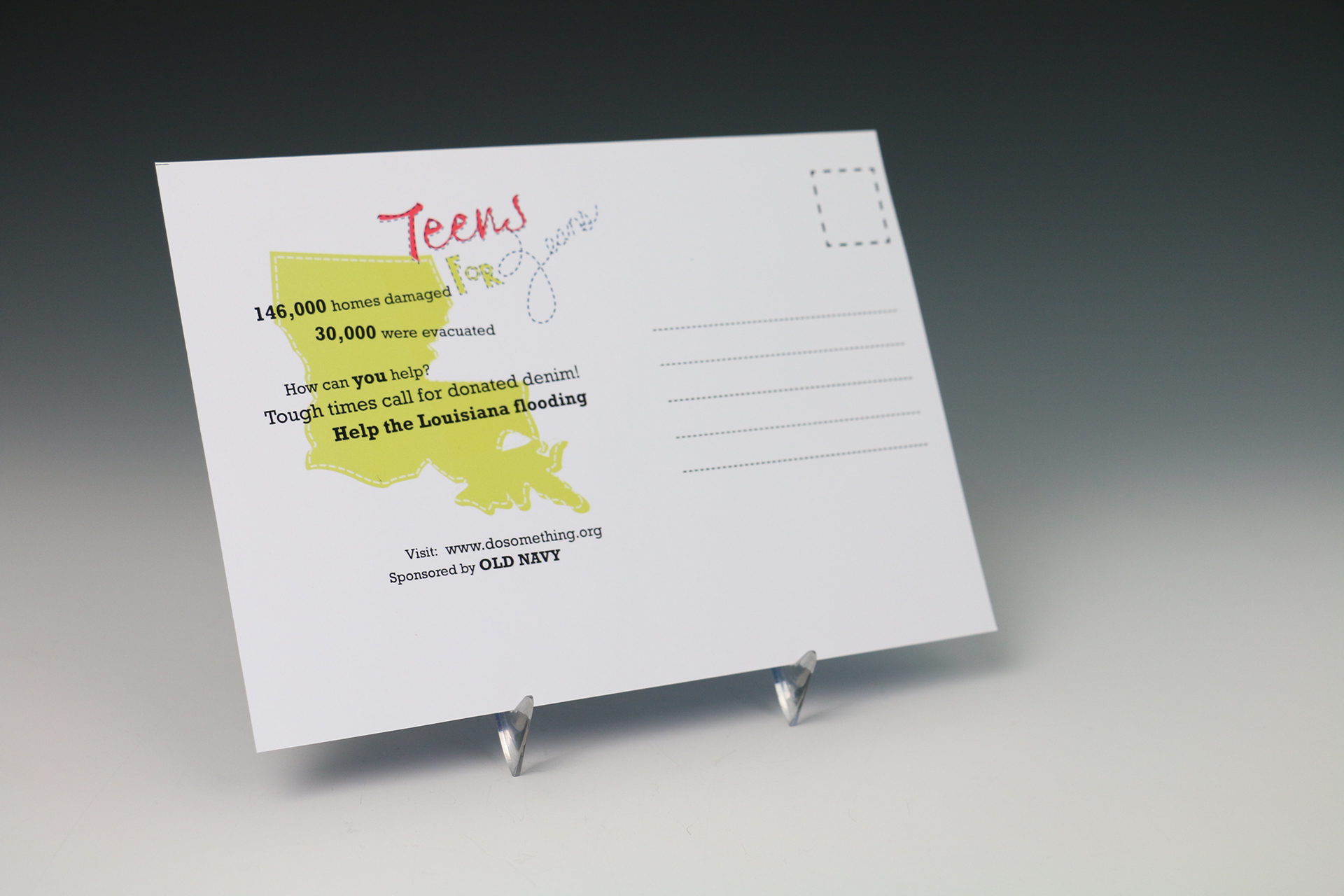 Postcard designed for the Teens for Jeans drive by Old Navy.